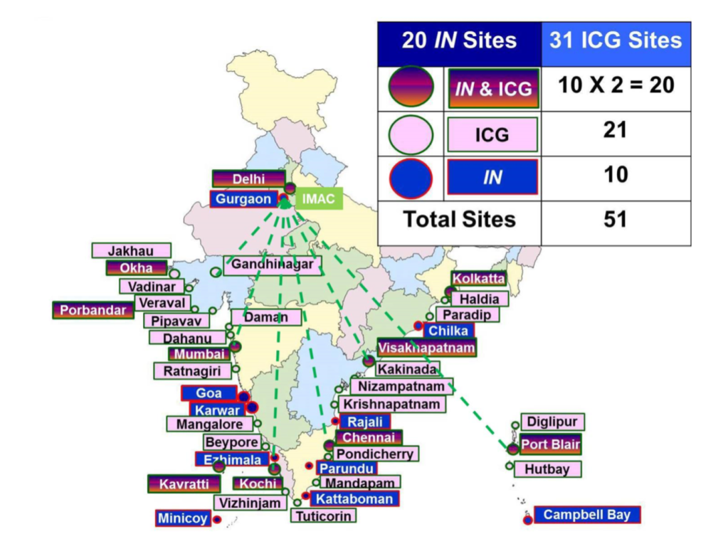 Figure 4: Location of Coastal Radars in India. Image courtesy: (Chawla, 2016)
